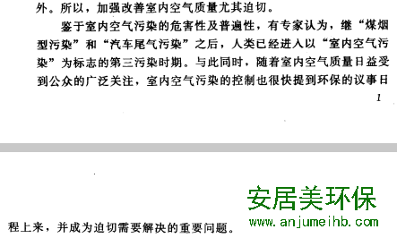 在过去CL多年中,我国在改善大气环境质I方面投人了大毋的人力和物力,毋庸t贬.这对于保阵人体健康起到了积极的作用。然而,由于建筑材料的围隔作用.使褥室内空气有娜于室外,特别是随着节住和沮度舒适要求的提高,建筑物密闭程度不断增大,相应地.室内与室外空气交换t减小,这使褥室内与室外的环境差异更加明显。大贵研究表明.室内空气的污染程度大多高于室外。所以,加强改善室内空气质里尤其迫切。