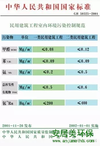 本标准适用范围: Ⅰ类民用建筑工程:住宅、医院、老年建筑、幼儿园、学校教室等民用建筑工程; Ⅱ类民用建筑工程:办公楼、商店、旅馆、文化娱乐场所、书店、图书馆、展览馆、体育馆、公共交通等候室、餐厅、理发店等民用建筑工程。 另一个是《室内空气质量标准》GB/T18883-2002,此标准是国家推荐性标准。这个标准参考世界卫生组织对室内甲醛浓度的限定标准,适用于检验人居环境是否符合健康居住。标准如下: