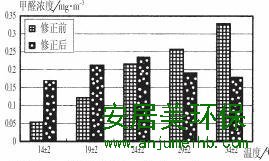 (mg3;K为温度系数。度下室内空气的甲醛浓度) 利用表1的数据,通过最小二乘法回归得到K=1.99。南方地区夏季的室内温度普遍在25℃左右,因而应将室内空气中的甲醛检测结果修正到25℃才能更真实反映室内空气污染的真实状况,从而得到温度的修正公式为: ⑵ C分别为t温度式中:t为检测时的室内温度(℃);C0、)。下和修正到25℃后的室内空气甲醛浓度(mgm3 利用式⑵对顺德地区带装修房室内空气中甲醛浓度进行温度修正后的结果如图4所示。可见,修正后的检测结果均在(0.17~0.23)mgm3之间波动,基本消除了检测温度对室内空气中甲醛检测结果的影响,避免了建筑物在冬季检测合格而到夏季又严重超标的现象,真实反映了在不利条件下(夏季25℃)室内空气中的甲醛浓度,从而保障人的身体健康。