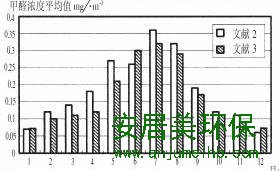 4 4.1 结论和建议 通过对相关研究文献的分析和顺德地区检测 图3 顺德地区带装修房甲醛浓度随检测温度的变化 3室内空气甲醛浓度检测的温度修正 由于室内装修材料中的甲醛释放速率的影响因 结果的统计,发现温度对室内空气中的甲醛浓度影响非常显著,夏季的检测结果约为冬季的6倍。 (下转第61页)
