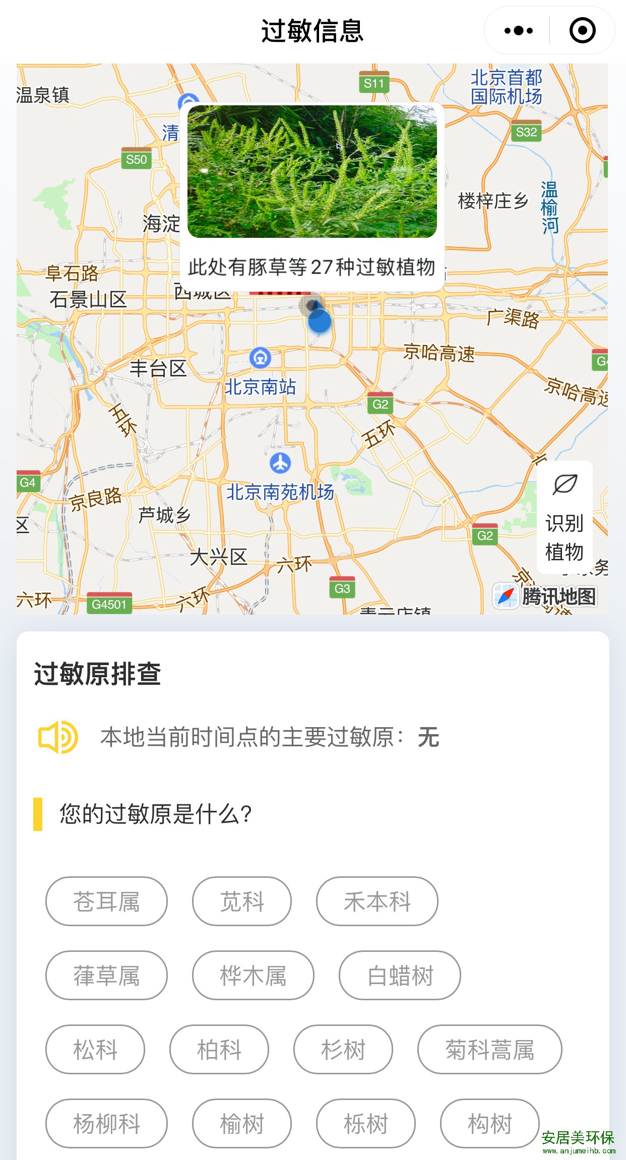 除了北京,小程序也支持全国主要城市致敏花粉查询,覆盖范围达全国18个主要城市。