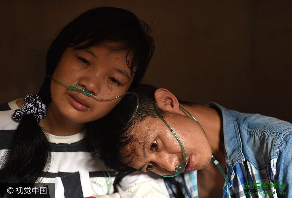 2017年6月,湖南永州,胡汉清今年36岁,是湖南省桂阳县白水乡四境村人,妻子黄玉连今年35岁,也是湖南人。两人在外打工相识,1999年成婚,婚后育有一双儿女。这对山里夫妻为了过上好日子,远赴他乡广东四会,和玉器打了5年交道,却不幸患上了尘肺病,如今生命已进入倒计时。图为胡汉清在街道小诊所连续打了几天吊针,仍四肢无力、食欲不振,连穿衣服都很吃力,望着两个未成年的娃,胡汉清希望自己多撑两年。但肺功能提醒他难过百日,生命进入了倒计时。九江安居美环保有限公司(www.anjumeihb.com)是一家围绕室内空气检测、室内空气治理和室内空气净化业务为核心的高科技企业。