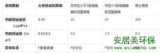 F级 F星级源自日本,共分为四个等级,但是比E级标准相对要有所提高,目前在市场上该标准并不常见,在国内权威检测机构一般也没有执行此类标准的检测。 F★(≤5.0mg/L) 甲醛释放量每L小于等于5mg F★★(≤1.5mg/L) 甲醛释放量每L小于等于1.5mg F★★★(≤0.5mg/L) 甲醛释放量每L小于等于0.5mg F★★★★(≤0.3mg/L)甲醛释放量每L小于等于0.3mg