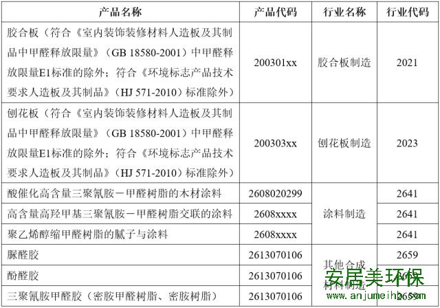 表2环境保护综合名录中涉及甲醛使用的产品名录(GHW/GHF)