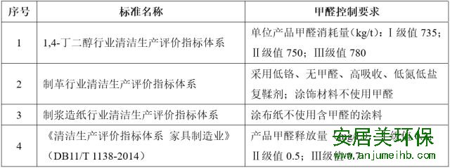 二、清洁生产评价指标体系推动相关产业健康发展 实践证明,推行清洁生产是污染防治的有效措施。各行业清洁生产评价指标体系有效的指导和推动相关企业依法实施清洁生产,提高资源利用率,减少和避免污染物的产生,保护和改善环境。目前,国家和地方与甲醛相关的部分清洁生产评价指标体系如下表所示。