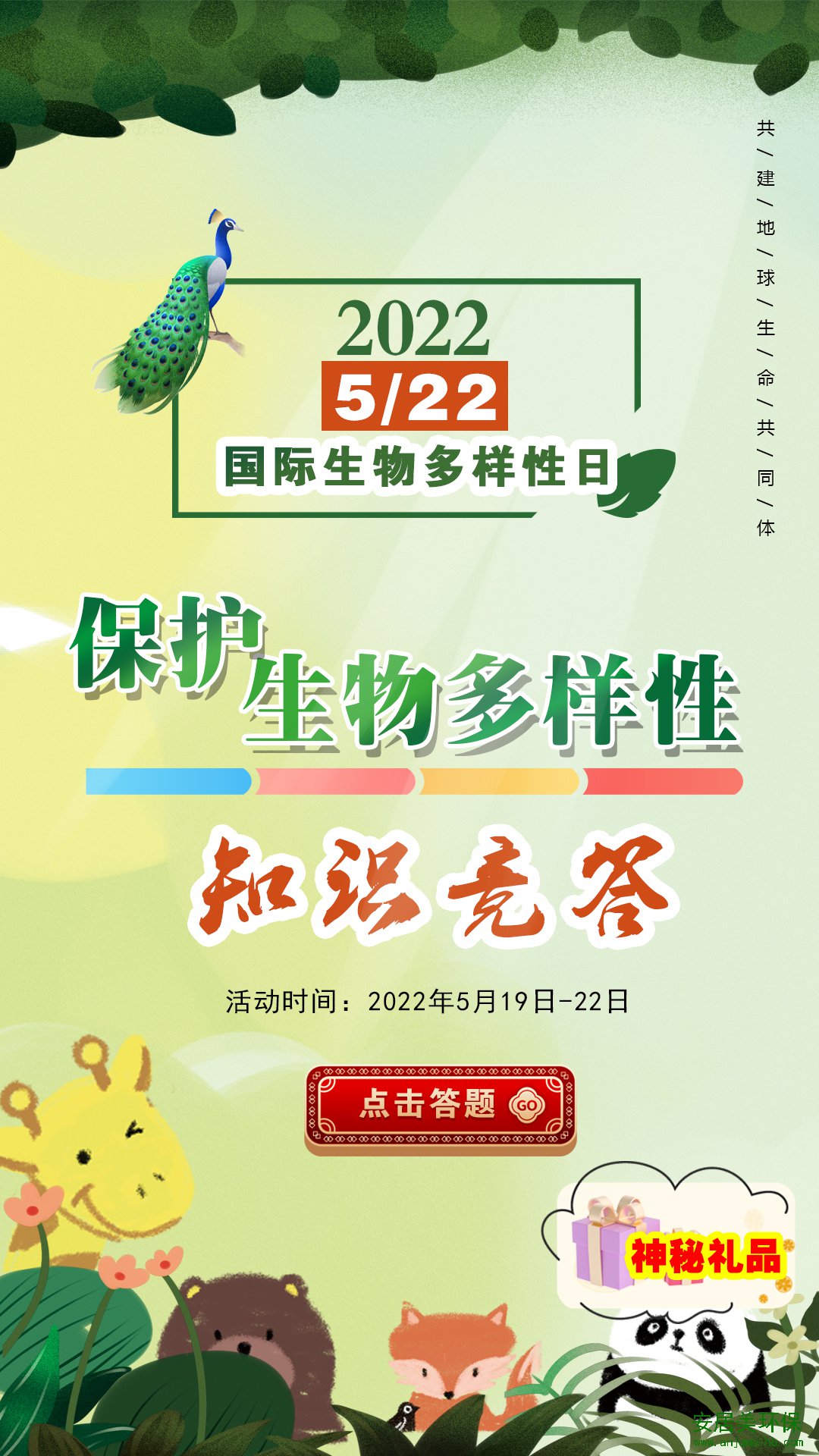点击海报进入答题 5月22日是国际生物多样性日,为进一步普及生物多样性知识,广泛宣传保护生物多样性、人与自然和谐共生的意义。在这个特别的日子里,中国环境APP为大家准备了有奖问答活动,答对5道题就有机会获得神秘礼品,小伙伴们快快积极参与,多多转发哦!武宁除甲醛公司 活动规则: 1.活动期间内,每人每天有3次答题机会,每次答题从题库随机抽取5道题目,每道20分,满分100分,错一题扣20分; 2.每次答题时间为1分钟,超时将自动结束答题,并计算成绩(取成绩最好一次进行排名); 3.答题有效时间为:2022年5月19日—22日,其它时间答题不计入成绩; 4.正确率越高、答题用时越短者,获得神秘礼品一份; 5.答题活动最终解释权在组织单位。